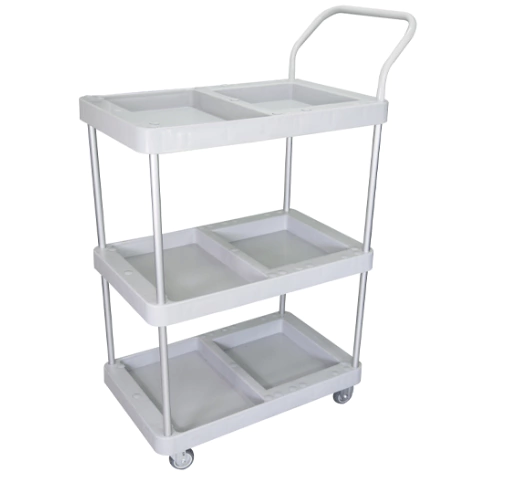 O Carrinho Bandeja TRIPLEX NY103 é a solução ideal para diversas aplicações, desde ambientes hospitalares até setores industriais e gastronômicos. Confeccionado em polietileno injetado na cor CINZA e com hastes em alumínio, este carrinho combina resistência e leveza, oferecendo a durabilidade necessária para o uso diário.