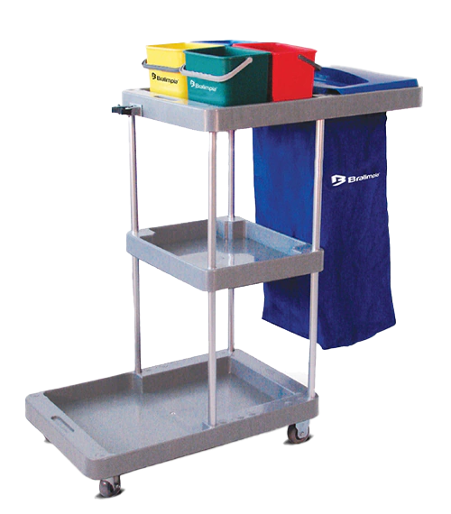 Destinado ao transporte de utensílios, produtos químicos e demais equipamentos de limpeza, permite que todos os materiais necessários sejam movimentados de uma só vez, otimizando o tempo e a eficiência das equipes de limpeza.