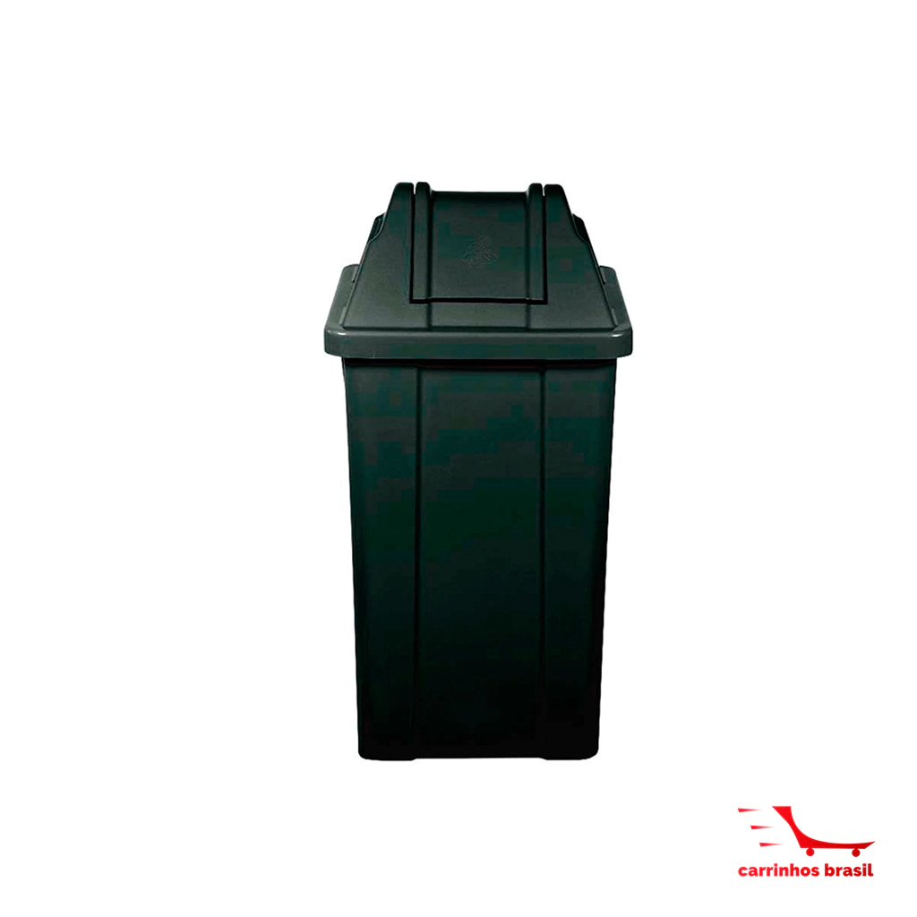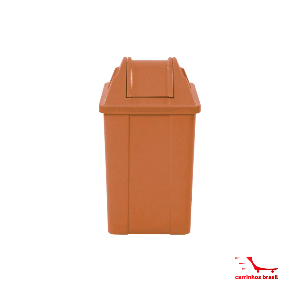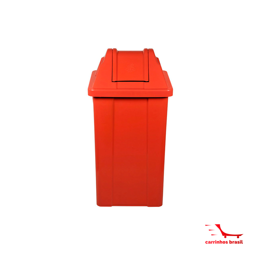 Possui cantos arredondados superfície de fácil limpeza, sua tampa basculante não permite o contato direto com o lixo.