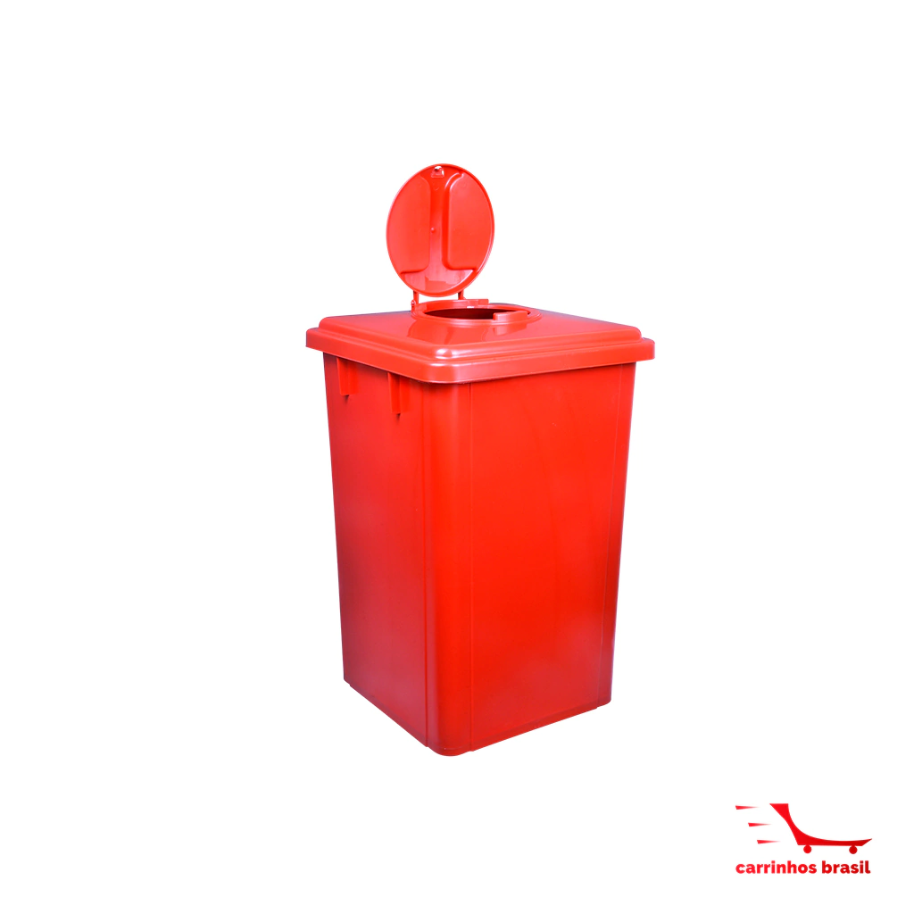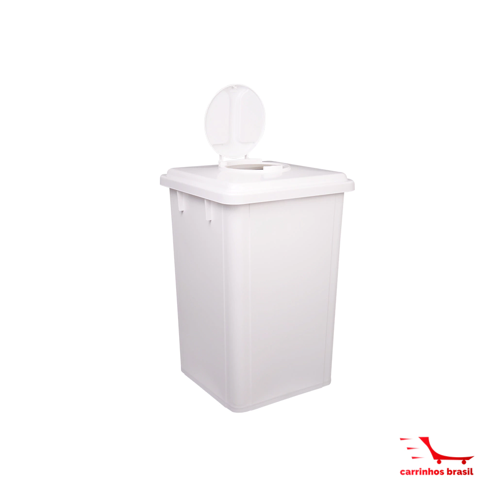 Lixeira borda extra reforçada para proporcionar maior durabilidade ao conjunto e maior vedação da estrutura da tampa. Alças para fixação do saco para lixo.Tampa quadrada tipo FLIP TOP. Capacidade 60 litros.Medidas externas:70 cm altura x 41 cm largura x 41 cm comprimento. Sem adesivo.